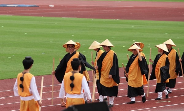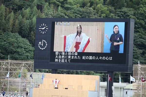 出演したのは「式典前演技」で、2800名の出演者と共に和歌山県の魅力や歴史を紹介する演目でした。